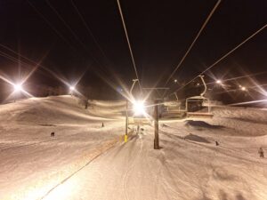 スタッフ日記 2026.02.27 セーフ!! 夜は雨予報 スイスイ空いてま~す! 天気は持ちそう🎵 一気に雪解けが進んでいるけど 滑りやすい!! オレンジリフトからは 夜の雲海 幻想的な風景 レッスン終了とともに ポツリ💧 ポツリ💧 あめ ☔ セーフ!! ん?アウト? ナイターインスタ(学校公認) @bank.nightskiclass フォーロー&いいね お願いします🤭